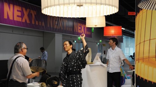 「見た目の面白さってすごく大事なんです。傘を貼るサムライは黒澤映画等で向こうでも知られているんですが、デザイン照明を作っていたらギャップがあって気になるじゃないですか? そこを入り口に、商品のプレゼンをする作戦です」